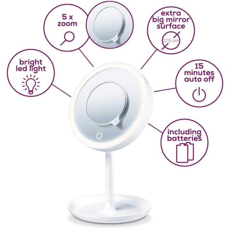 מראת איפור וקוסמטיקה מוארת Beurer BS45 עם מראה מגנטית נוספת והגדלה פי 5